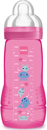 בקבוק הזנה 330 מ''ל 4+ חודשים פטמה שלב 3 זרימה מהירה MAM - צבע ורוד כהה