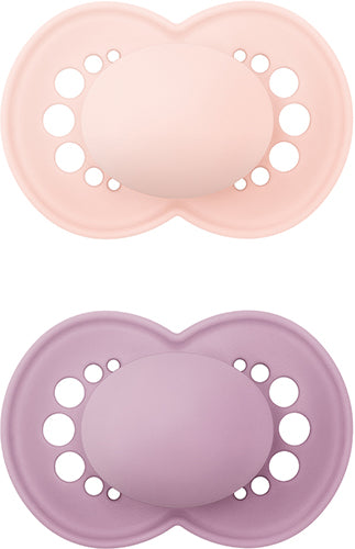 זוג מוצצי סיליקון +6 חודשים MAM - צבע ורוד בהיר/סגול