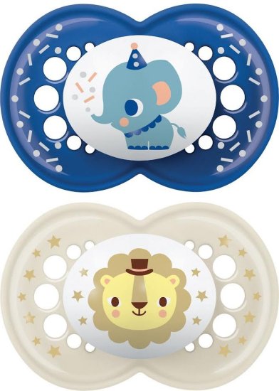 זוג מוצצי סיליקון +6 חודשים MAM - צבע כחול/בז'