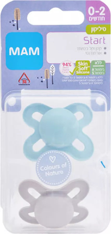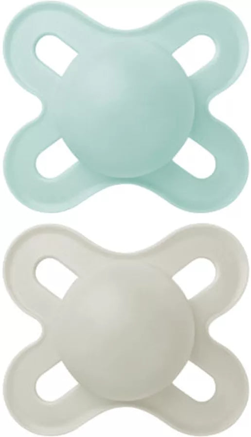 זוג מוצצי מאמ מסיליקון לגיל 0-2 חודשים, מתאים לתינוק שנולד, עם פטמה אורתודנטית סימטרית וגודל שילדה קטן.