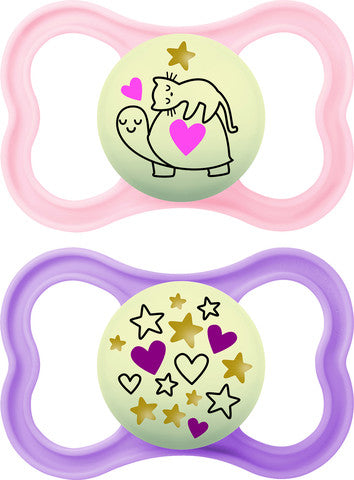 מאמ SUPREME NIGHT מוצצי סיליקון 6+ זוהרים בלילה ורוד-סגול 2 יחידות