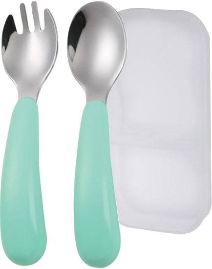 סט כפית ומזלג ממתכת כולל קופסת נשיאה מגיל 12 חודש BABY LINE