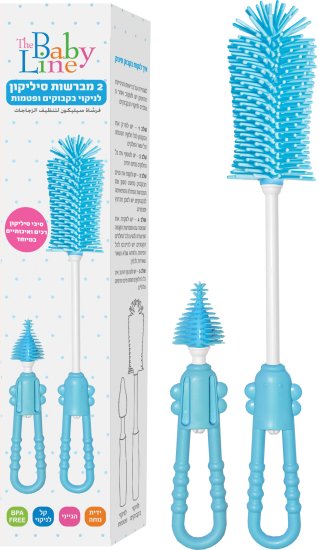 2 מברשות סיליקון לניקוי בקבוקים Baby Line - צבע תכלת